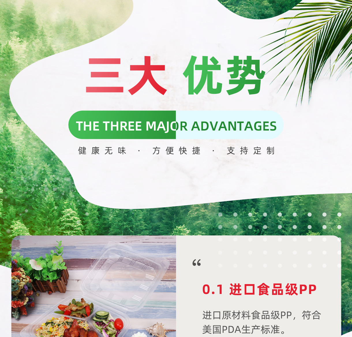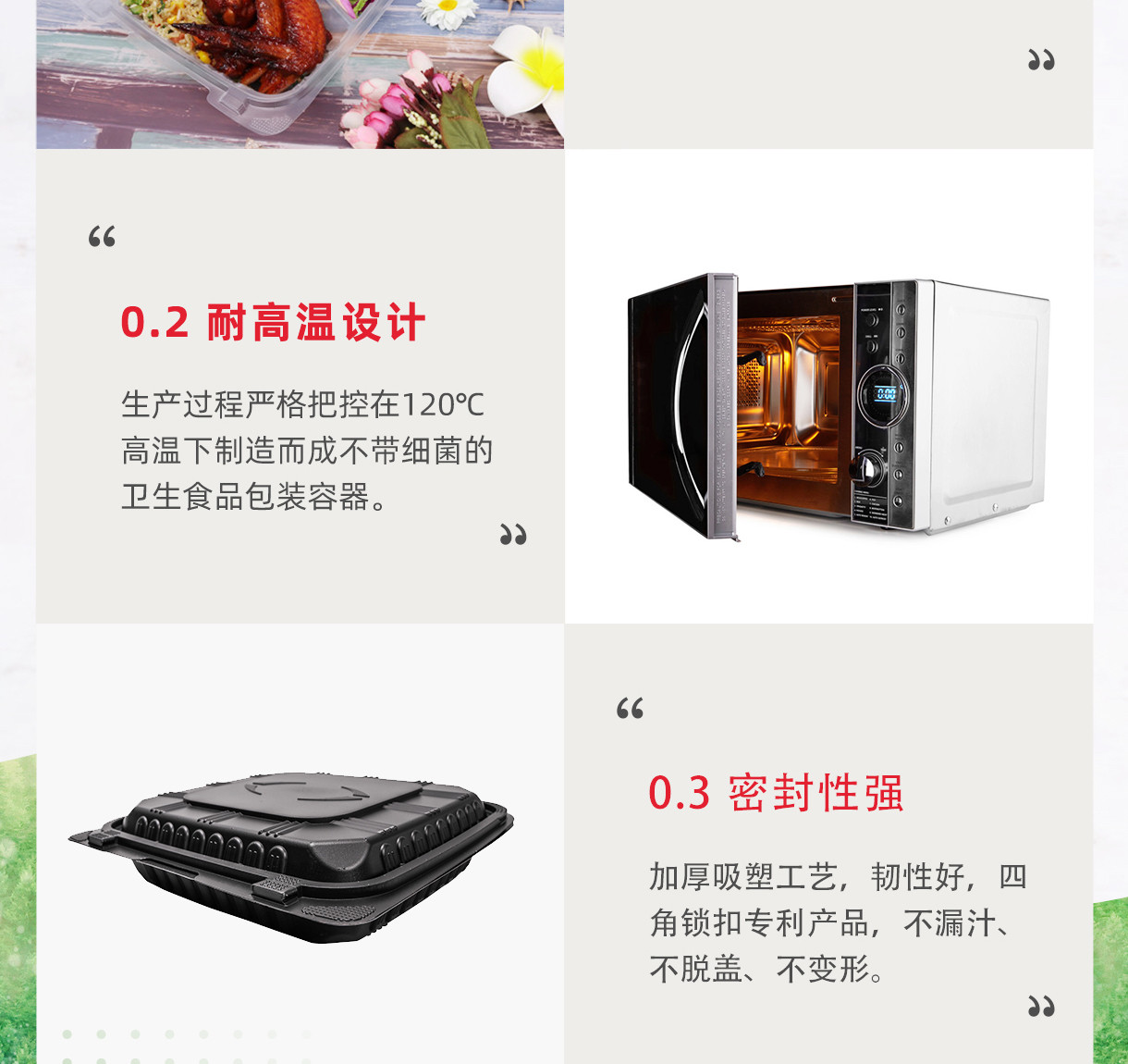 一次性pp饭盒带盖封口黑色方形三格格快餐盒